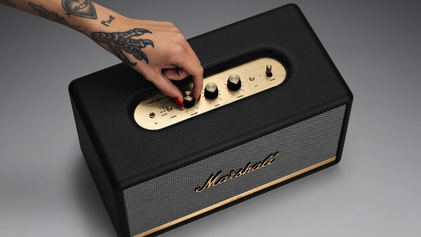 Rekomendasi produk audio Marshall selanjutnya adalah Marshall Stanmore II. Speaker yang satu ini bisa dibilang merupakan produk Marshall paling serbaguna di antara produk lainnya. Mengusung desain klasik, Marshall Stanmore II didesain layaknya penutup vinyl bertekstur dengan hiasan bingkai kayu kokoh berlogo skrip ikonik. Di bagian depan speaker tersematkan pelat kuningan yang terukir tahun pendirian 1962.