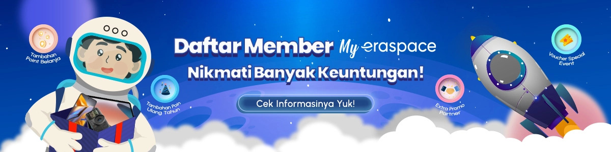 Wah menarik dan seru-seru banget kan benefit dari jadi Member Spacetronot. Kamu juga bisa dapetin itu semua kalo kamu jadi Member MyEraspace dan Member Spacetronot dengan cara cukup belanja dengan nilai transaksi lebih dari 50 juta per tahunnya, kamu sudah bisa daftar jadi Member Spacetronot. Kunjungi website atau download aplikasi Eraspace untuk informasi lebih lanjut.