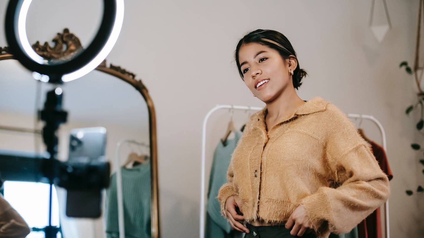 Untuk membantu mendapatkan cahaya yang pas, kamu bisa menggunakan bantuan ringlight jika memang ruangan tidak memiliki cahaya yang ideal atau pas.