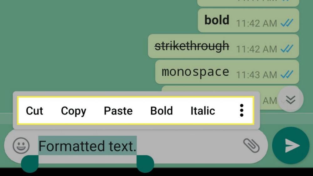 Salah satu kode rahasia chat WhatsApp yang bisa digunakan adalah dengan mengombinasikan format huruf menjadi tebal, miring, dan tercoret sekaligus. Jika sebelumnya kamu sudah mengetahui cara membuat tulisan tebal, miring, dan tercoret, ada kode rahasia lainnya untuk menggabungkan ketiga format tersebut secara bersamaan.