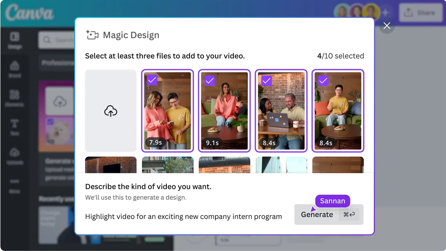 Selain itu, Canva juga menawarkan fitur Magic Design yang menggunakan kecerdasan buatan (AI). Pengguna cukup menjelaskan keinginan mereka atau mengunggah media sendiri, lalu Magic Design akan menciptakan berbagai jenis konten seperti postingan media sosial, presentasi, atau video profesional berdasarkan deskripsi atau media yang diberikan.