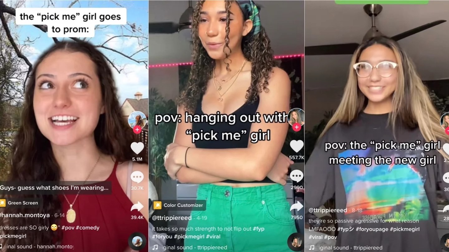 Pick me girl merupakan istilah di TikTok yang populer sejak beberapa bulan terakhir. Berdasarkan definisi di internet, pick me girl diartikan sebagai seseorang yang bertindak atau mengeklaim dirinya “tidak seperti cewek lain”. Hal ini biasanya dilakukan untuk menarik perhatian lawan jenis.