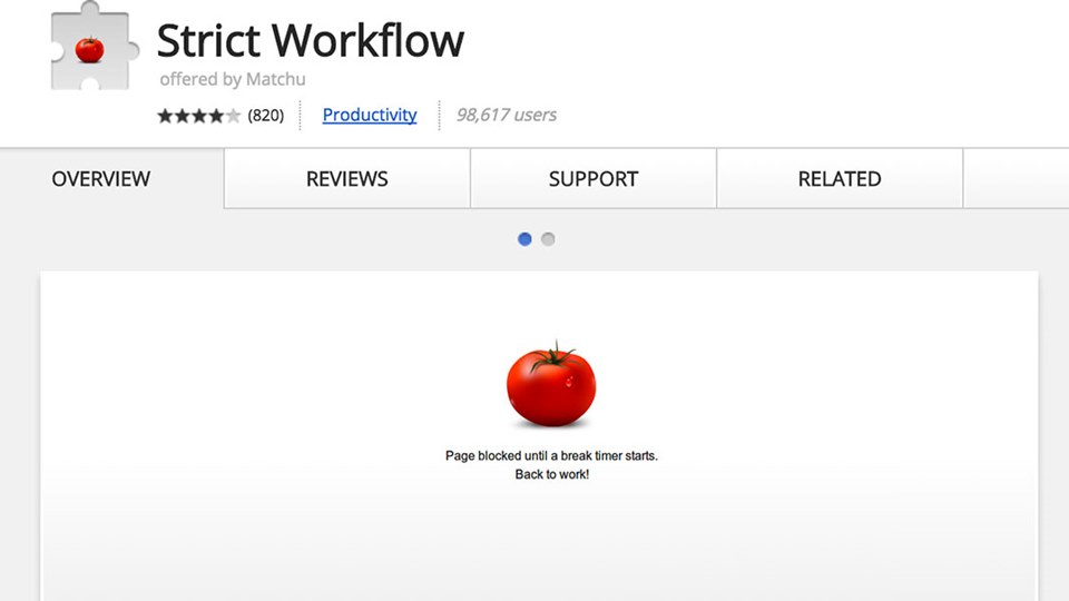 Selanjutnya ada Strict Workflow yang terinspirasi dari teknik Pomodoro dengan durasi bekerja selama 25 menit dan istirahat 5 menit. Kemudian, kamu bisa mengulangi pengaturan waktu ini hingga pekerjaan selesai. Dengan menggunakan browser extension ini, kamu bisa mengatur waktu kerja selama 25 menit agar bisa fokus ke pekerjaan, lalu mengatur waktu istirahat selama 5 menit.