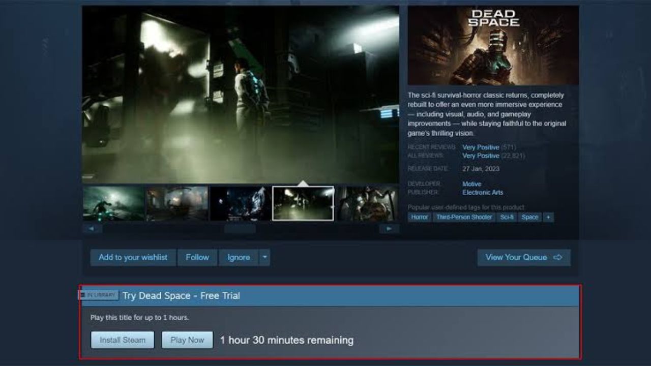 Hingga saat ini, game yang baru tersedia untuk diakses melalui Steam Game Trials hanyalah Dead Space, yang dapat kamu mainkan selama 90 menit. Dead Space adalah sebuah game yang menggabungkan elemen horror dan action yang menarik. Kamu akan berperan sebagai Isaac Clarke, seorang teknisi yang terjebak di pesawat ruang angkasa yang dipenuhi makhluk mengerikan dikenal sebagai “Necromorphs”.