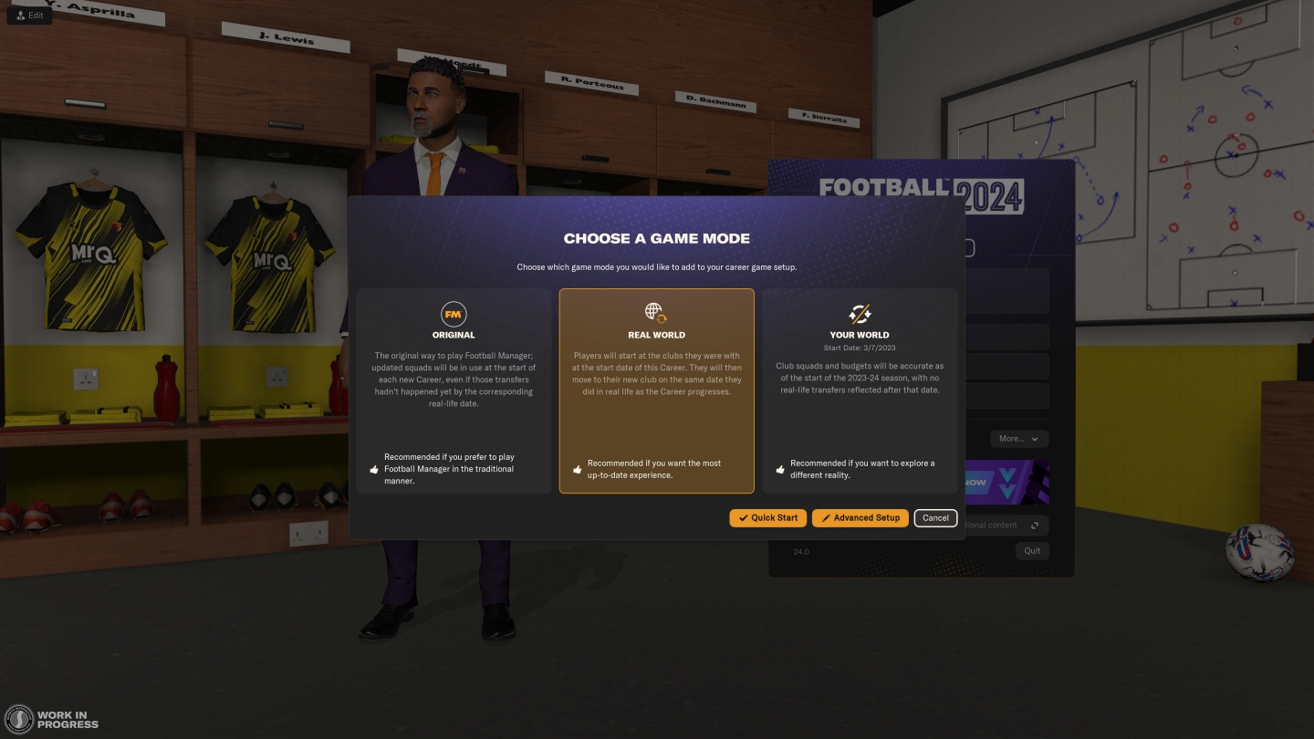 Gameplay Football Manager 2024 menawarkan sejumlah mode permainan berbeda yang lebih menarik dari versi pendahulunya. Selain mode gameplay standar yang biasa dimainkan banyak orang, kamu juga bisa memainkan dua mode game lainnya yang baru, yaitu mode Real World dan Your World. Menariknya, kedua mode tersebut akan memberikan pengalaman simulasi manajemen sepak bola yang lebih otentik seperti dunia aslinya.