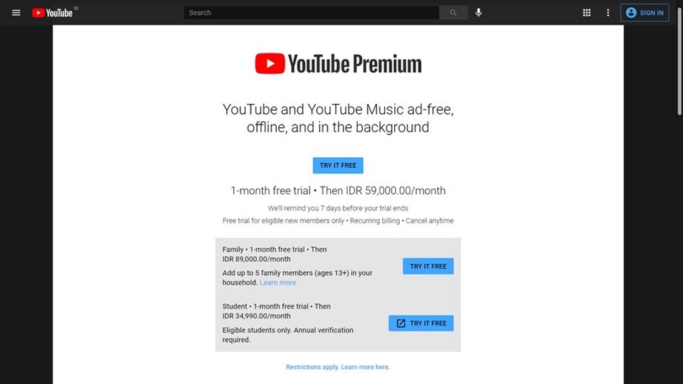 Cara Berlangganan YouTube Premium
