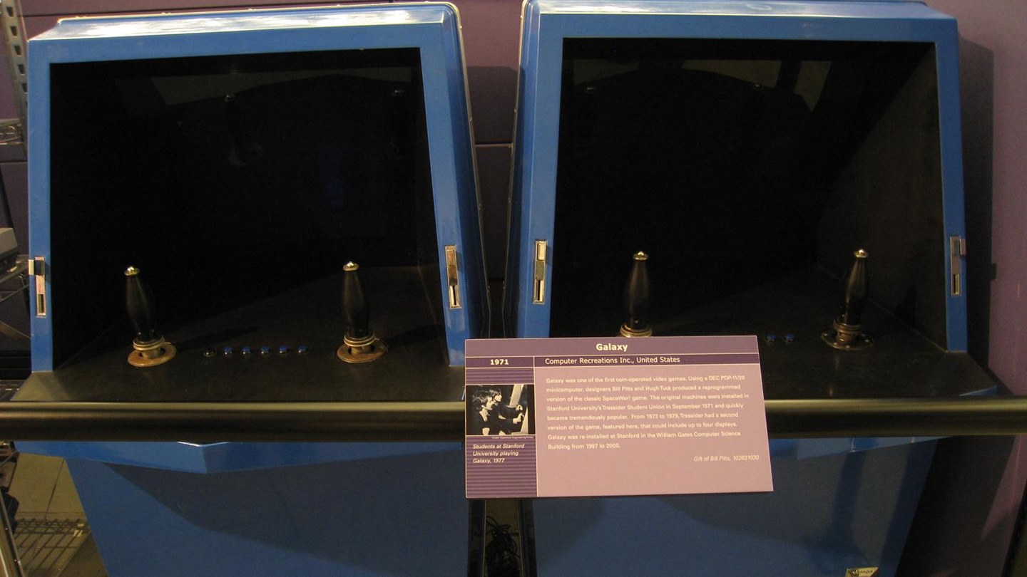 Selanjutnya ada Galaxy Game yang dirilis pada tahun 1971 sebagai video game arcade dengan pemain yang mengendalikan dua kapal perang luar angkasa untuk saling tembak sampai menang. Galaxy Game sendiri dikembangkan oleh Bill Pitts dan Hugh Tuck melalui versi pertamanya yang memakan biaya pengembangan mencapai 134 ribu USD atau sekitar Rp2 miliar.