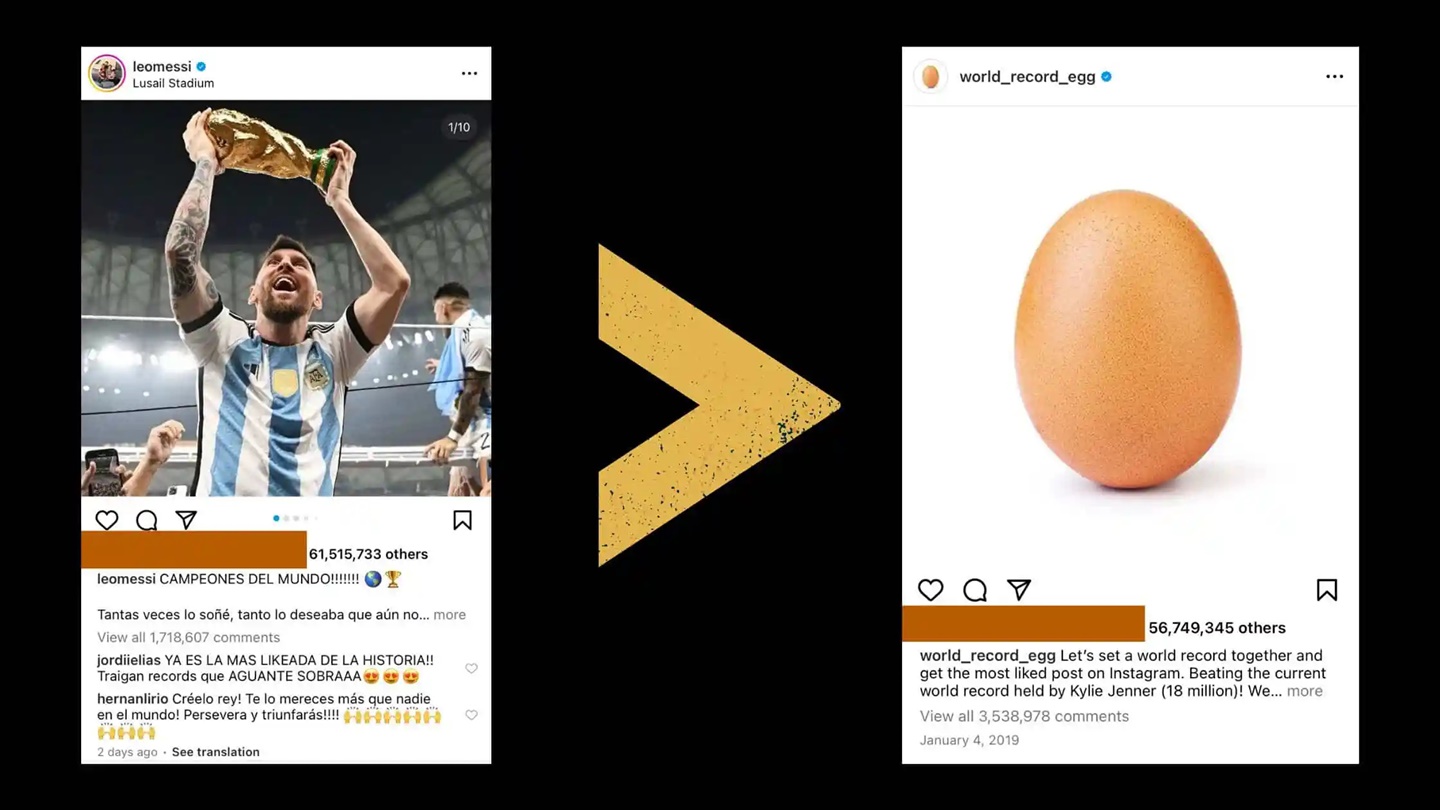 Kini, rekor tersebut telah diambil alih oleh GOAT sepak bola terkini, Lionel Messi. Di mana, unggahannya mampu meraih posisi tersebut dalam waktu kurang dari 3 hari. Sebanyak 71.269.300 juta orang telah menyukai postingan tersebut terhitung hari Kamis 22 Desember, atau hanya 3 hari sejak unggahan tersebut mengudara.