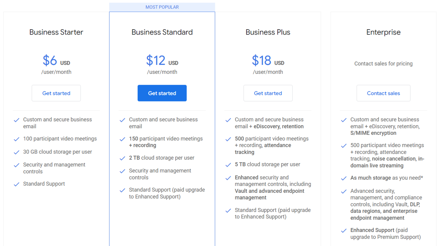 Untuk menikmati layanan Google Meet berbayar, kamu harus berlangganan dahulu Google One Premium. Tersedia lima jenis paket berlangganan dengan sejumlah biaya yang beragam, mulai dari 5USD hingga 18USD. Paket langganan ini terdiri dari free, starter, standard, plus, dan enterprise. Meskipun begitu, Google hanya menyediakan satu pilihan paket saja di Indonesia dengan harga 135 ribu per bulannya.