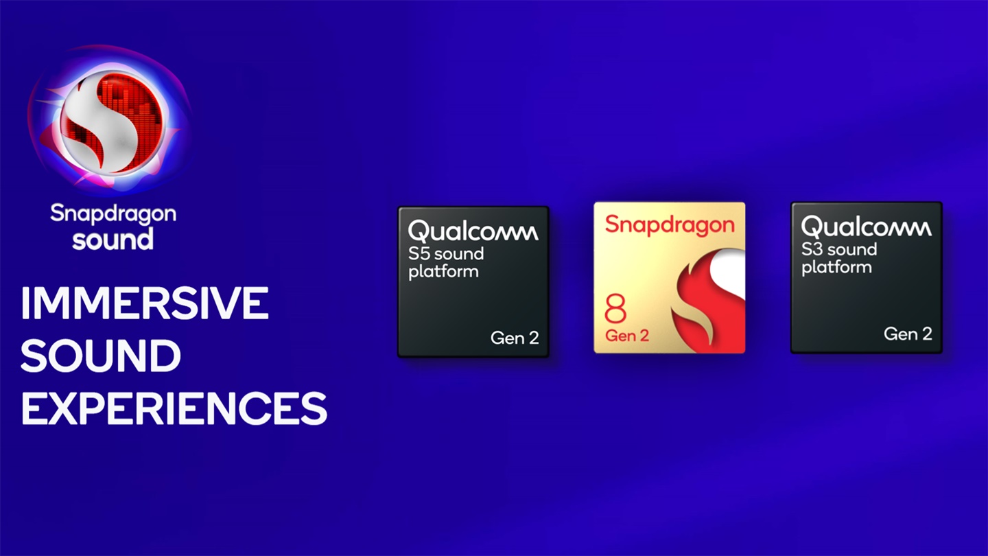 Qualcomm S5 Gen 2 dan S3 Gen 2 mendukung Snapdragon Sound dan memboyong fitur baru berupa audio spasial dengan pelacakan gerakan kepala yang dinamis, streaming musik lossless yang ditingkatkan, serta latensi rendah hingga 48 ms.