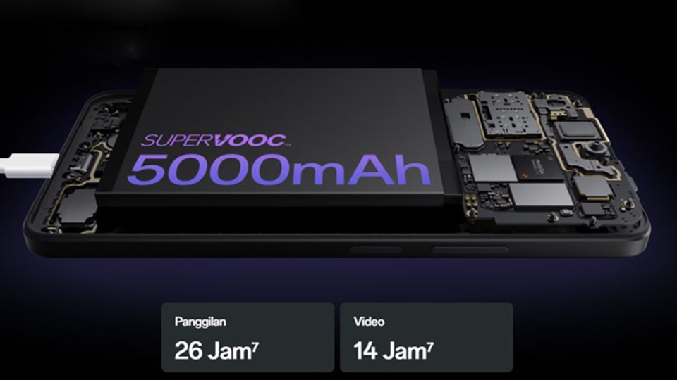 Bagi kamu yang sering melakukan perjalanan atau beraktivitas di luar ruangan, baterai yang tahan lama menjadi salah satu kebutuhan utama dalam kehidupan sehari-hari. Dibekali dengan baterai berkapasitas besar yakni 5.000mAh dan kemampuan pengisian SUPERVOOC 33W, smartphone ini akan membuat kamu merasa tenang karena memiliki kekuatan yang mampu bertahan hingga 14 jam untuk menonton video di YouTube atau bermain PUBG selama 6 jam nonstop.