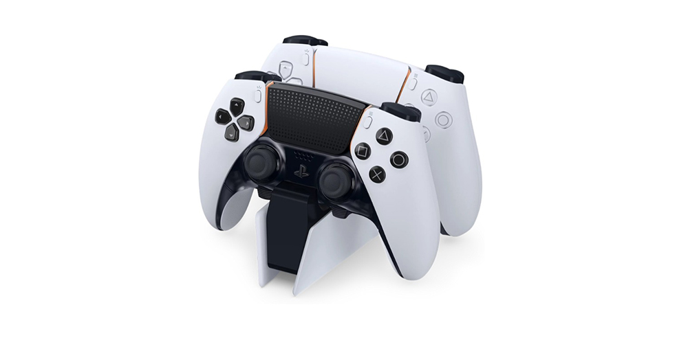 Buat dua pengontrol tetap terisi penuh - termasuk pengontrol nirkabel DualSense Edge Anda - dengan desain stasiun pengisian daya DualSense yang dapat diklik dengan cepat dan mudah, tersedia untuk dibeli sekarang.